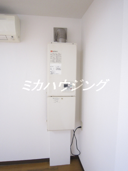 ★室内に洗濯機置場とやや大きな給湯器があります。バルコニーはないので、洗濯物は室内か窓から直接干すようになります。