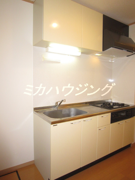 ★キッチンは3口のシステムキッチン、自炊派には嬉しいですね♪手際良く料理が出来そう^^