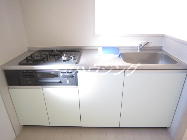 ★対面式キッチンがあるのでお料理をしながら会話が楽しめます♪キッチンは3口ガスコンロでグリル付、新婚さんやカップルにピッタリ!