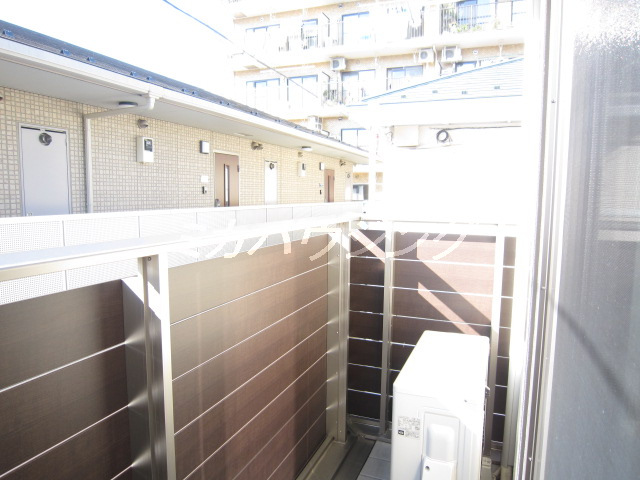 ★バルコニーは少し狭いかな?バルコニーから前に建つアパートの玄関が見えますね^^;