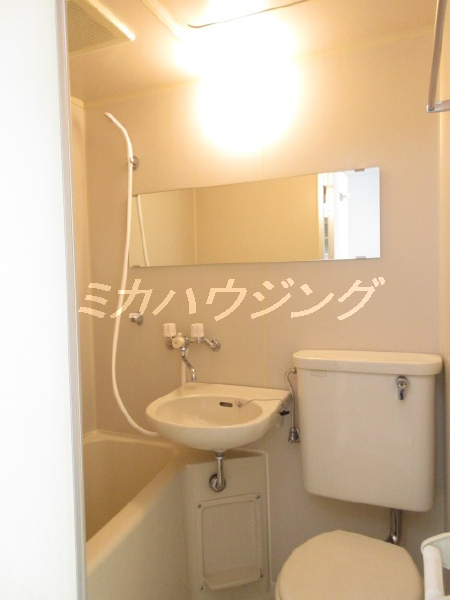 ★3点ユニットバスですが、バスとトイレの掃除が一緒に出来て楽です♪大きな鏡が付いているので身支度が楽ですね