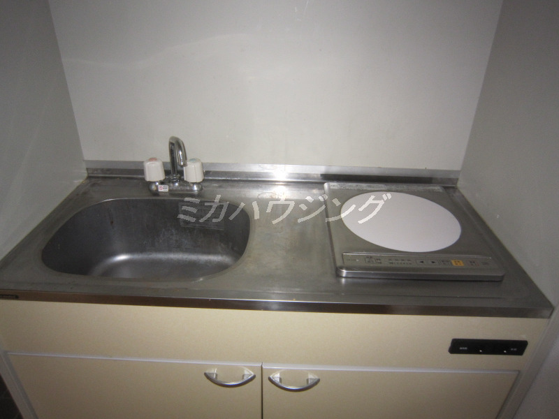 ★キッチンは1口のIHヒーター、狭いですが調理スペースはあります。