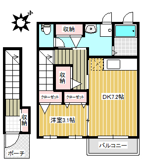 間取 | 1DK | 間取詳細 | 洋3.1、DK7.2 |