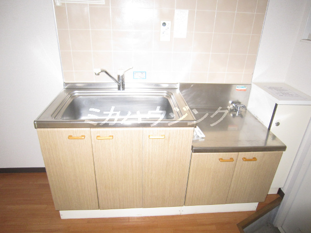 ★キッチンは2口ガスコンロ設置可能。流し台は広いのですが、調理スペースがないので工夫が必要です。