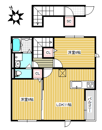 | 間取 | 2LDK | 間取詳細 | 洋6、洋6、LDK11 |