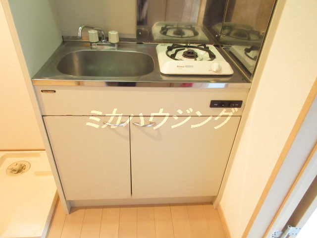 ★キッチンは1口のガスコンロ、調理スペースがないのであまり料理をしない人向きですね。冷蔵庫は部屋置きになります。。。