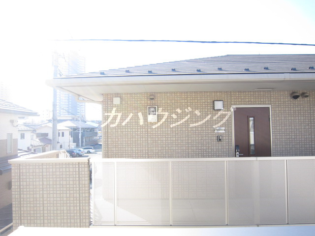 ★バルコニーは少し狭いかな?バルコニーから前に建つアパートの玄関が見えますね^^;