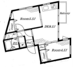 | 間取 | 2DK | 間取詳細 | 洋4.5、洋5.5、DK8.5 |