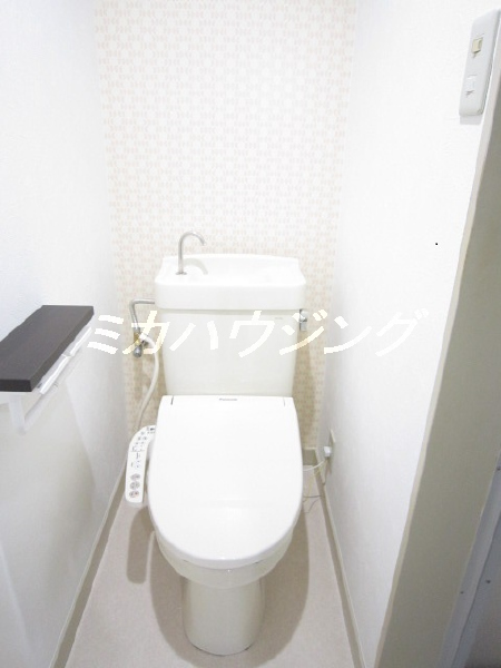 ★トイレの隣が洗濯機置場、好みが分かれそうですね^^; トイレは温水洗浄便座です。