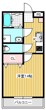 | 間取 | 1K | 間取詳細 | 洋7.4、K |