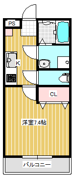 | 間取 | 1K | 間取詳細 | 洋7.4、K |