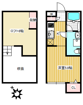 | 間取詳細 | 洋5.8、K、ロフト6 |