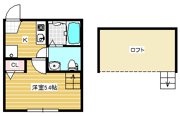 | 間取詳細 | 洋5.4、K、ロフト |