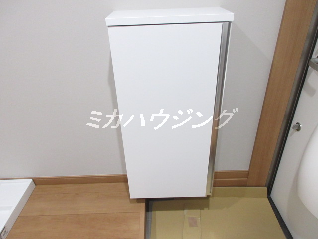★洗濯機置場上部やトイレ上部に収納棚(重量1kgまで)があります。何かと便利ですよね♪