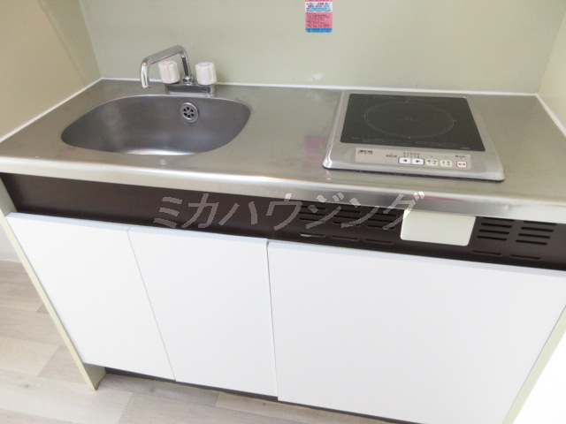 ★キッチンは1口のIHヒーター、調理スペースがあるので自炊派にオススメ!
