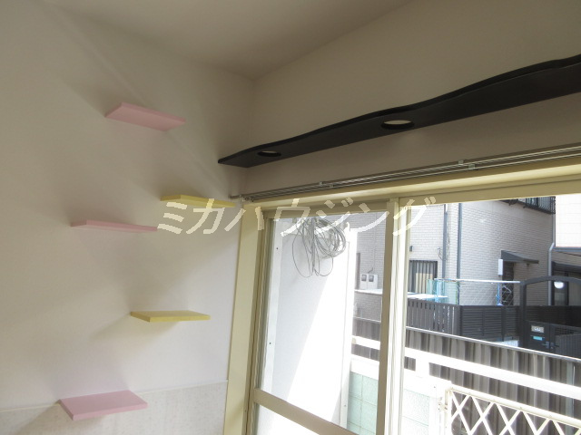 ★爪とぎ防止用の腰壁・キャットウォーク・クローゼット内部猫専用入口が完備されています。しかもクローゼット内部には、猫のトイレ用換気扇も設置されていますよ