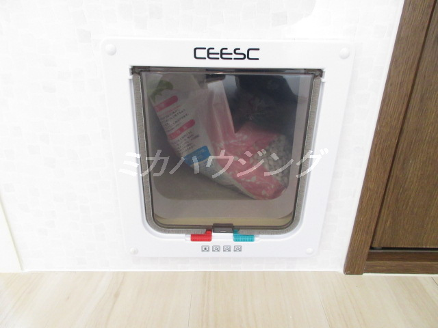 ★爪とぎ防止用の腰壁・キャットウォーク・クローゼット内部猫専用入口が完備されています。しかもクローゼット内部には、猫のトイレ用換気扇も設置されていますよ
