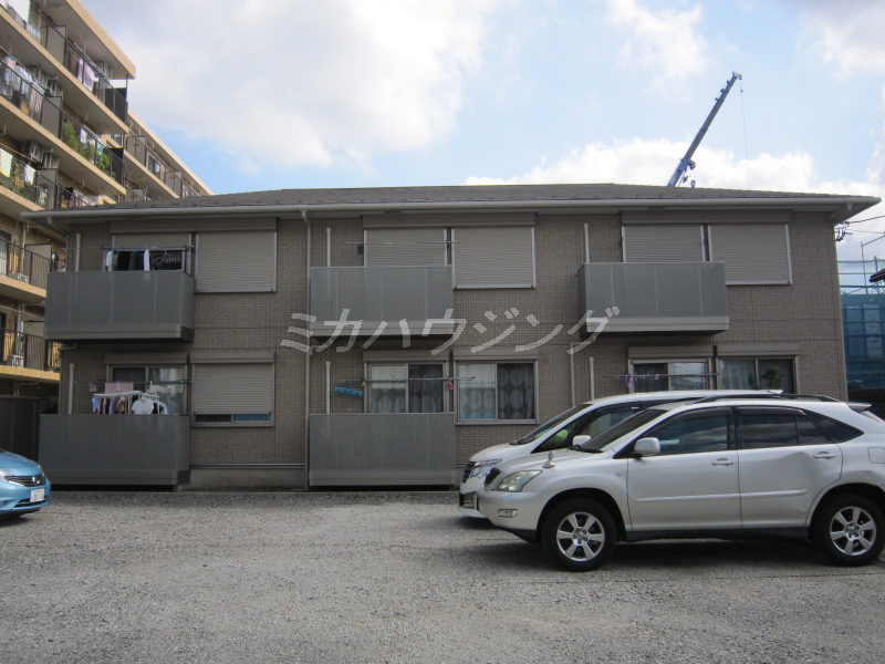 ★駅徒歩5分!南大野交番近く。道路からアパートまでの両脇は月極駐車場なので、遮蔽物がなく陽当りバッチリ!バルコニーは少し狭いですが、洗濯物は良く乾きますよ♪